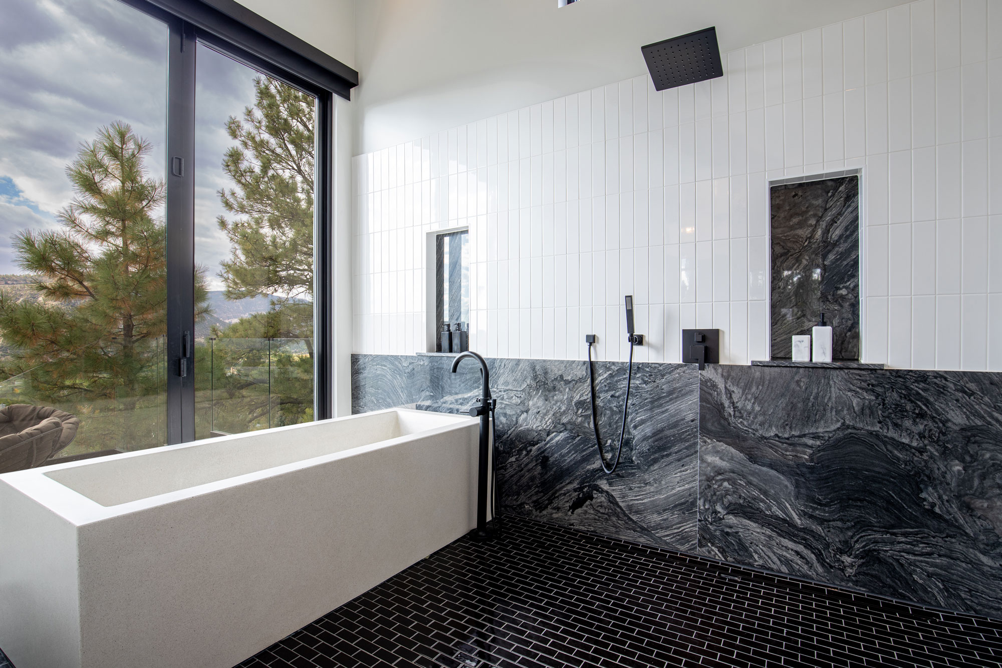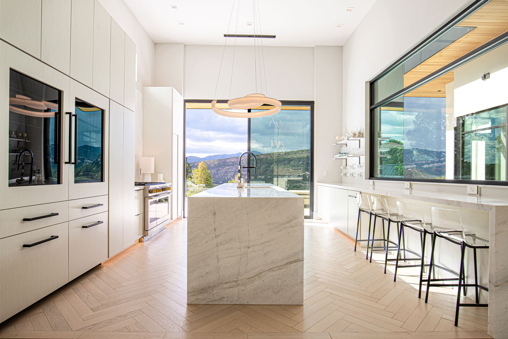 Located in the Animas River Valley, this home takes a decisively ultramodern approach. The architecture is defined by crisp geometry and a strong horizontal presence, with glazing carefully calibrated through solar study to bring balanced natural light deep into the interior while maintaining comfort and efficiency. In contrast to the firm’s typical mountain modern work, the design leans into a more minimal and graphic expression, where proportion, contrast, and precision carry the composition. The project is distinctly client-driven, resulting in a residence that prioritizes individuality and a more unconventional approach to living, pushing the boundaries of the firm’s typical design language while remaining grounded in its regional context.