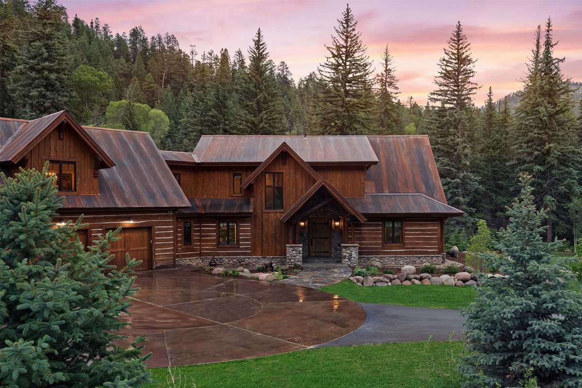 Set high on Missionary Ridge above Durango, this residence is designed as a refined mountain retreat shaped by craftsmanship, warmth, and a strong connection to its setting. A timber-framed entry, curved porch canopy, and richly layered stonework give the home an immediate sense of character, while generous windows and covered outdoor living spaces open the house to the surrounding pines and long-range views. Inside, vaulted spaces, substantial wood detailing, and custom art-glass accents create a home that feels both elevated and deeply welcoming.